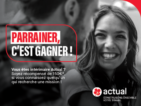 Spécialiste du travail intérimaire, du recrutement, de l'accompagnement et de la formation depuis plus de 30 ans, Actual est aujourd'hui le leader indépendant sur le marché du travail et de l'emploi en France. Avec plus de 400 agences réparties sur le territoire, Actual accompagne chaque année 60 000 hommes et femmes dans leur parcours professionnel en leur proposant des solutions adaptées à leur projet (Intérim, CDI intérim, CDI, CDD, formation...). Vous recherchez un emploi ? Vous avez un projet de recrutement pour votre société ? L'ensemble de nos conseillers Actual se mobilise au quotidien pour répondre à votre besoin.
