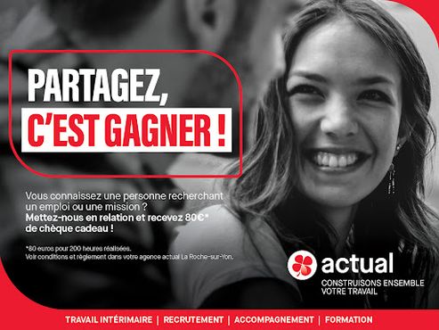 Spécialiste du travail intérimaire, du recrutement, de l'accompagnement et de la formation depuis plus de 30 ans, Actual est aujourd'hui le leader indépendant sur le marché du travail et de l'emploi en France. Avec plus de 400 agences réparties sur le territoire, Actual accompagne chaque année 60 000 hommes et femmes dans leur parcours professionnel en leur proposant des solutions adaptées à leur projet (Intérim, CDI intérim, CDI, CDD, formation...). Vous recherchez un emploi ? Vous avez un projet de recrutement pour votre société ? L'ensemble de nos conseillers Actual se mobilise au quotidien pour répondre à votre besoin.